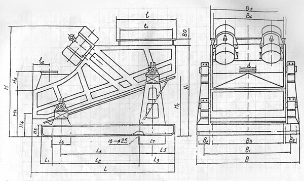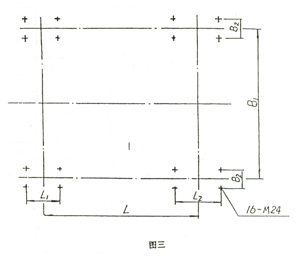 ZSG系列高效重型振動(dòng)篩的基礎(chǔ)尺寸見圖三、表四。